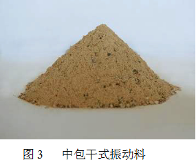 干式料是近年来发展起来的连铸中间包工作衬用耐材,因其具有施工简便快捷、劳动强度低可快速烘烤而利于钢厂中包周转运行、降低生产成本等众多特点,因而受到国内外冶金工作者的青睐,我公司与高校联合研制的ZD系列连铸中包用干式振动料采用紧密堆积原理,添加多种有机结合剂、无机结合剂和助烧结剂精制而成,具有较大的堆积密度和耐钢渣侵蚀冲刷能力,能满足快速烘烤和快速翻包以及满足长寿命等苛刻要求,外形见图3,理化指标详见表5